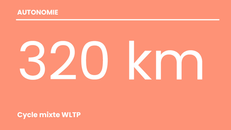 *Les données d'autonomie électrique sont déterminées selon la méthodologie de test WLTP. L'utilisation quotidienne peut varier en fonction de divers facteurs et configurations du véhicule, tels que le style de conduite personnel, les caractéristiques de la route, la température extérieure, le chauffage/la climatisation, la préconditionnement et l'état de la batterie.