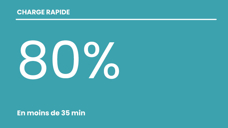 En plus de pouvoir récupérer 50 km d'autonomie en seulement 5 minutes de recharge, la 500e atteint 80 % de la recharge totale de la batterie en 35 minutes.